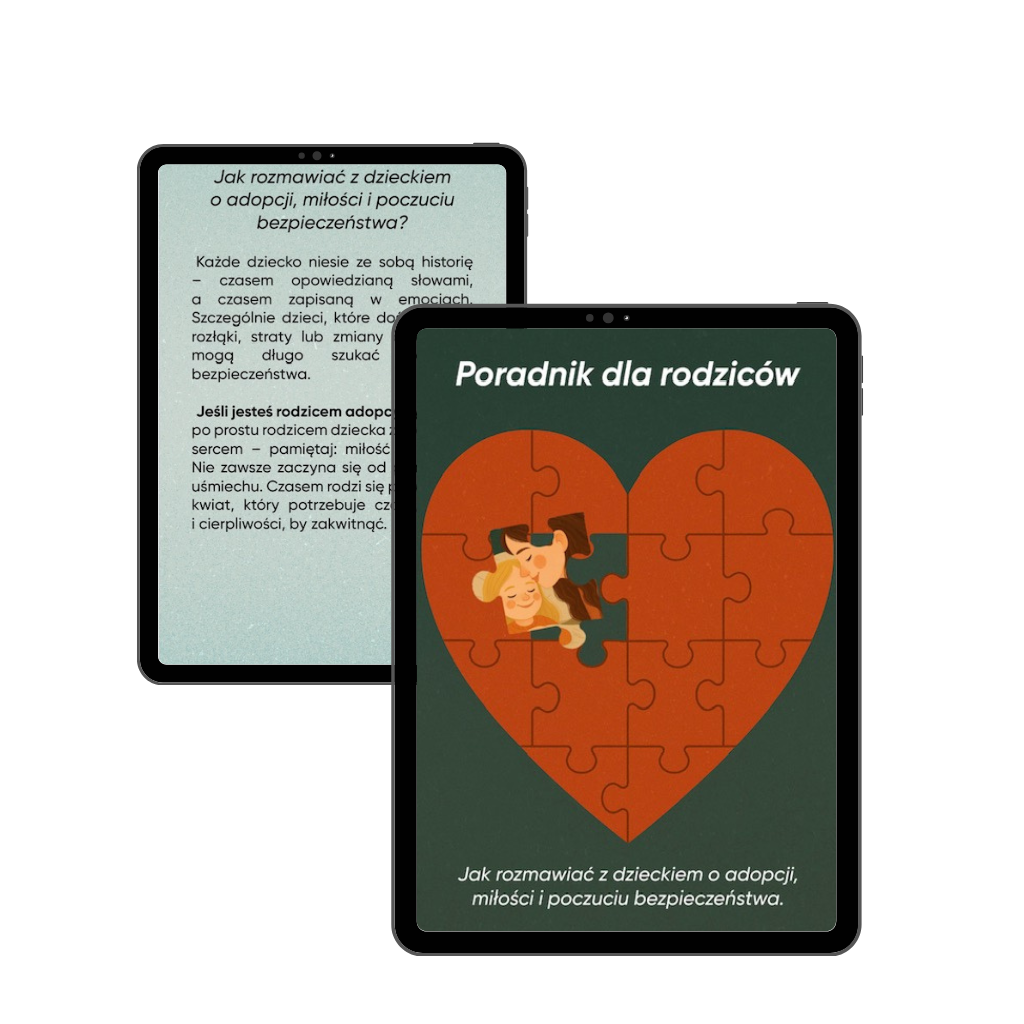Poradnik dla rodziców: „Jak rozmawiac z dzieckiem o adopcji, miłości i poczuciu bezpieczeństwa” w formie ebooka.